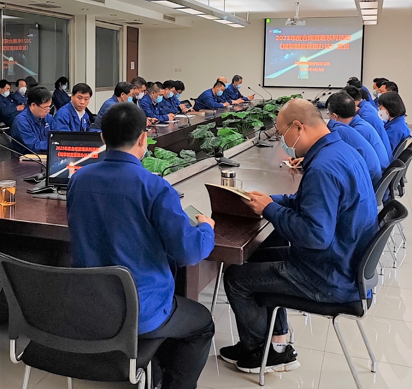 無規(guī)矩不成方圓。完善規(guī)章制度是合規(guī)管理的前提,規(guī)章制度也是構(gòu)筑內(nèi)部控制的基本要素;是各項業(yè)務(wù)應(yīng)該遵循的標(biāo)準(zhǔn)和程序;是檢查和糾正違規(guī)問題的依據(jù)。在“2023年合規(guī)文化年”啟動會后,河冶科技率先從公司制度入手,合規(guī)管理負責(zé)人梁敬斌在每月一次的辦公會上向全體干部宣貫《規(guī)章制度管理辦法》,并提出工作要求,各職能部門全面梳理公司11大類、380余個管理文件,根據(jù)法律、法規(guī)、政策等制定依據(jù)的變化、部門職責(zé)的變化、公司發(fā)展要求的變化等情況,建立制度“修、立、廢、釋”的長效機制。