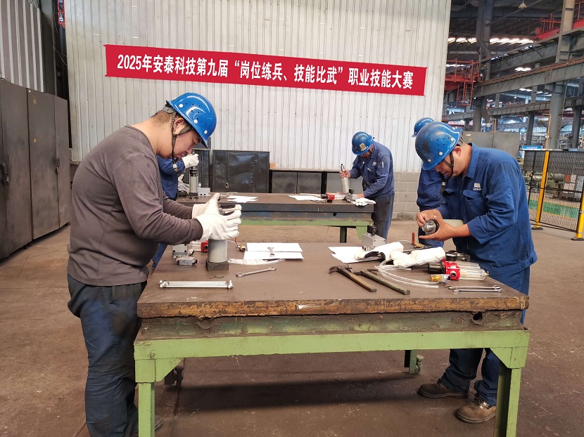 鉗工比賽主要考察選手的動手能力、操作規(guī)范性和問題解決能力。參賽選手需根據(jù)給定的氣動傳動原理圖,完成執(zhí)行元件的組裝,并連接各控制與執(zhí)行元件間管線,對執(zhí)行元件動作順序、狀態(tài)、速度進行調(diào)試,整個過程要求操作規(guī)范、步驟清晰、結(jié)果準確,充分體現(xiàn)選手在實際工作中的應變能力和專業(yè)素養(yǎng)。經(jīng)過激烈的角逐,來自連軋分廠的信松憑借其出色的動手能力、操作規(guī)范性和問題應變解決能力奪得第一名,這不僅體現(xiàn)了該選手在實際工作中的應變能力和專業(yè)素養(yǎng),也間接展示了他在面對復雜任務時的綜合處置能力。